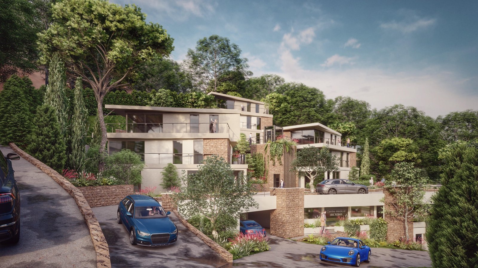 The Couleur-Estérel residence is being built by Les Chênes Verts sarl, which is responsible for project management and development. This family-owned company of Belgian origin is a guarantee of reliability and quality. Its philosophy is based on the implementation of refined, contemporary architecture, perfectly integrated into its environment and giving pride of place to natural materials and plants.